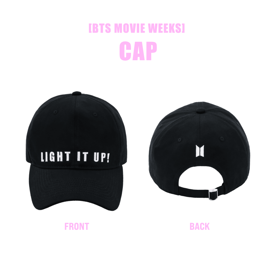 [BTS MOVIE WEEKS] CAPInner circumference 58cm ~ 61cm Brim width 7.5cm Height 10cm¥3,800 (税込)「BTS MOVIE WEEKS」を記念したCAPです。映画のキャッチフレーズ “ LIGHT IT UP ! ” が刺繍でデザインされています。後ろにはBTSロゴが刺繍されています。ZIP-UP HOODIEやBIG TOTE BAGと合わせて様々なコーディネートをお楽しみください。