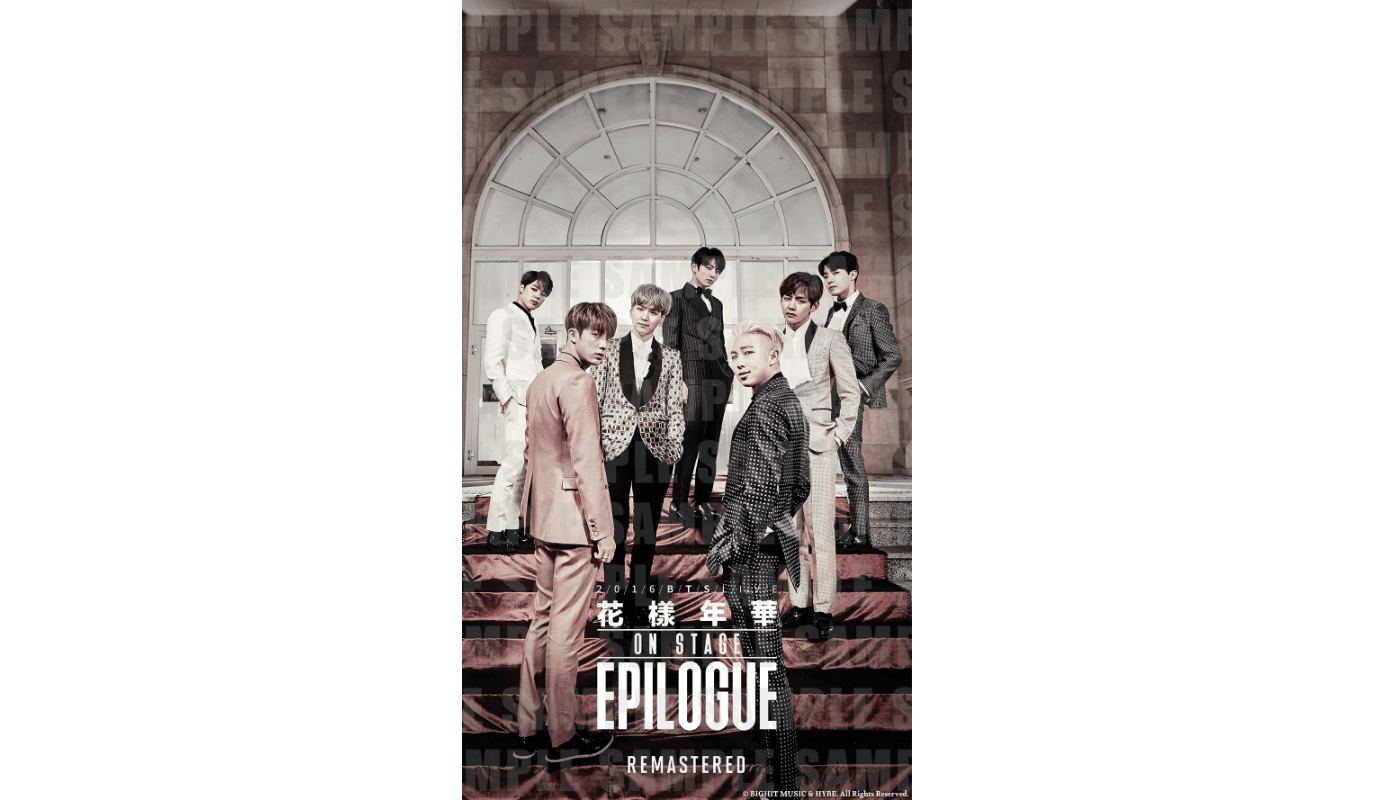人生で最も美しい瞬間を意味する、「花樣年華」シリーズのグランドフィナーレとなる『2016 BTS Live 花樣年華 On Stage : Epilogue』。「Autumn Leaves」と「Butterfly」のいつまでも残る優しさのようなステージから、「FIRE」、「Save ME」、そして「EPILOGUE: Young Forever」の力強いパフォーマンスまで、現在のBTSを形作った青春の物語が、スクリーンで鮮やかに蘇ります!